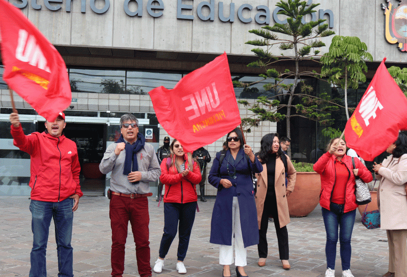 El Magisterio de Pichincha realizó un plantón en los exteriores del Ministerio de Educación para